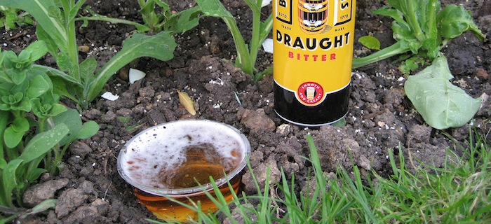 Whatever the type of beer you use, you can create your own slug trap. Use cottage cheese, margarine, or similar size plastic containers. Put between 1/2 and 2 inches of beer in each container and place the containers around your garden, especially around plants prone to slug damage. Never sink the containers with their rims flush with the soil level or you run the risk of drowning ground beetles, important slug controllers. The rims should be 1" above the soil's surface. You will probably need to empty the container of drowned slugs every other night.